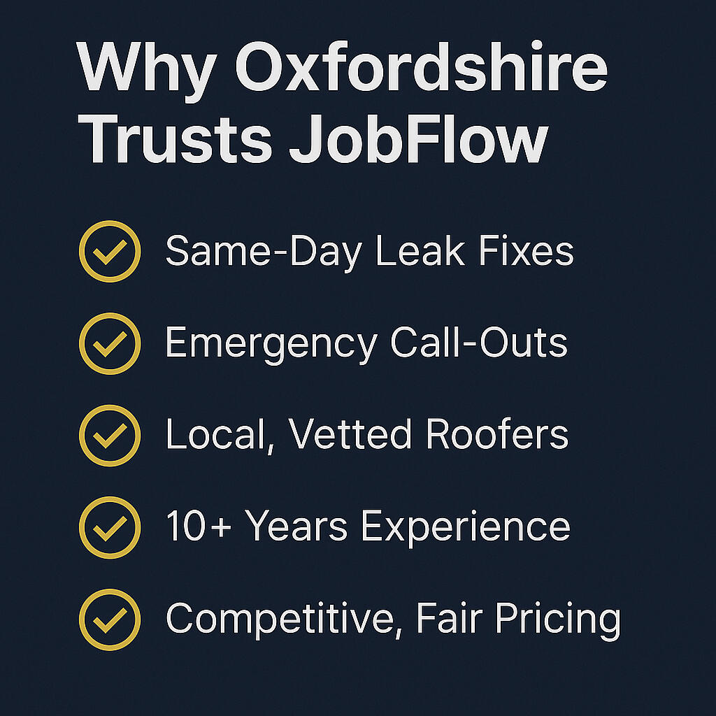 JobFlow works with vetted, local roofing professionals across Oxfordshire.